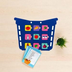 This engaging shopping cart game introduces children to everyday grocery items while boosting their vocabulary, memory, and organization skills. Kids pick a shopping list card and “shop” by finding and matching the correct items to fill their cart.